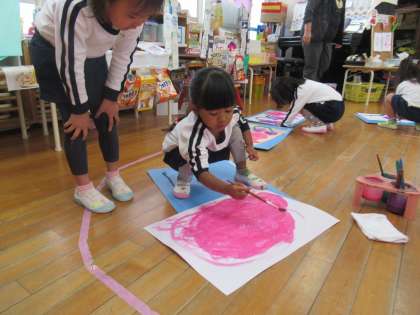 17日 今日の様子3 もも組(3歳児) 公開日 2023/11/17 更新日 2023/11/17 3歳児 昨日芋ほりをしました。 今日は、お芋の絵を描きました。 大きなお芋や小さなお芋など様々な形のお芋を楽しく描いていましたよ。