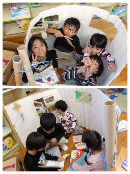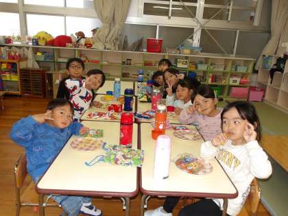 21日 なかよしルーム(預かり保育)2 お部屋では・・・ 公開日 2023/11/21 更新日 2023/11/21 預かり保育 なかよしルームのダンボールハウスは満員☆精米は10分チャレンジして一旦終了し、好きな遊びをしています。 おやつの時間、前髪の分け方が偶然同じだと話題になり、それなら私も僕もと前髪をセット☆楽しいおやつの時間でした。
