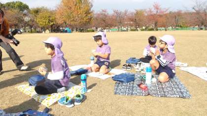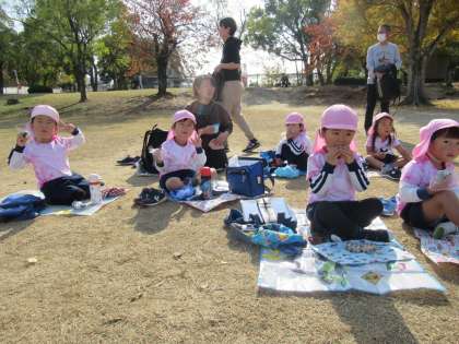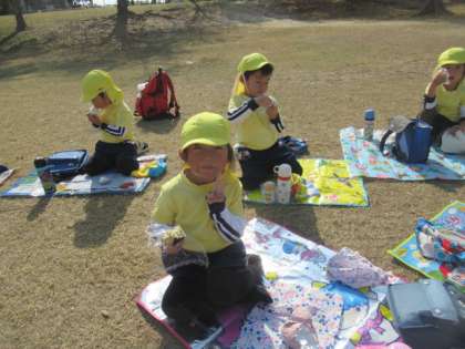気持ちの良い緑の中を抜けると、大きな芝生広場が・・子供達はさっそくシートを広げて、おいしそうなおにぎりを口に頬張っていましたよ!「おいしい!」かわいいペンギンや動物に変身したおにぎりを食べている子もいました。