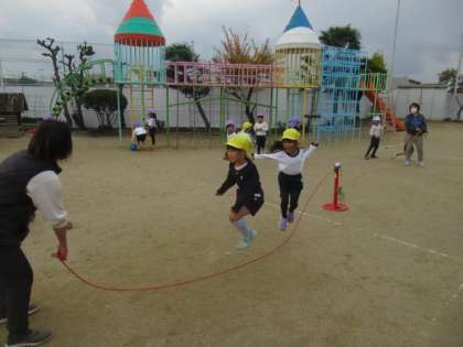 28日 たんぽぽ組(4歳児)〜3〜 公開日 2023/11/28 更新日 2023/11/28 4歳児 園庭でも元気いっぱい遊んでいます。 大縄跳びでは手をつないで2人組で跳ぶことに挑戦したり、鉄棒では自分たちで技を考えて友達と見せ合いっこをしています。 少し難しいことにもどんどん挑戦していくことが楽しいたんぽぽ組の子どもたちです♪