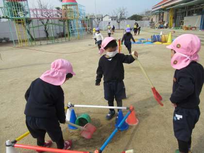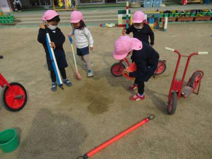 今日はいいお天気だったので、園庭で思い切り遊びました。