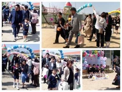 式が終わりましたら、保護者の方と手をつないで3、4歳児の子ども達と保護者の方が作ってくださったアーチの中を通らせていただきました。