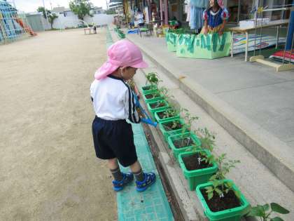 自分で育てている野菜に毎日お水をあげてお世話をしています。