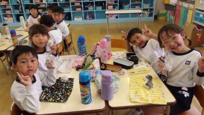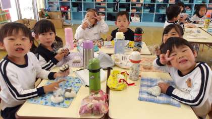 おうちの人がつくってくださったおにぎりを食べることを喜んでいます。