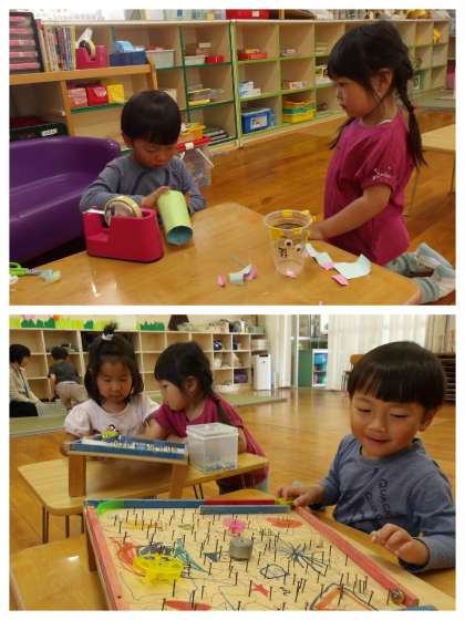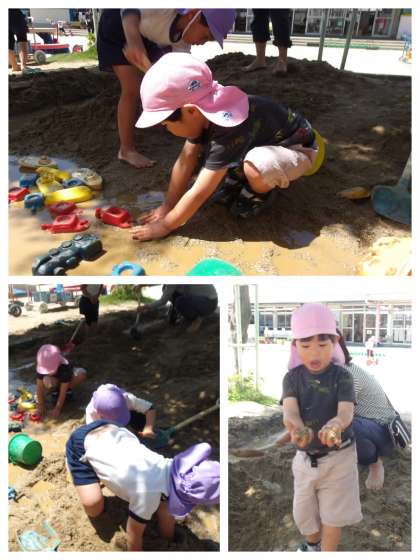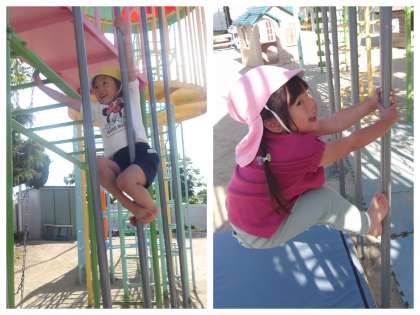 10日 なかよしルーム(預かり保育)面白そう!やってみたい! 公開日 2024/05/10 更新日 2024/05/10 預かり保育 お弁当のあとの自発活動の時間、なかよしルームに来ていた年少さんも園庭で遊びました。年長さんが土や水で遊んでいる側で、年少さんも土や水の感触を楽しんで遊んでいました。 年中さんが上り棒を登っていく姿を見ると、すぐに裸足になり登ってみる年少さん。面白そうなことはやってみたくなるね。