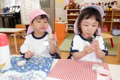 朝から「おにぎりもってきたよ」