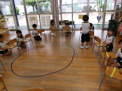 その後は縄跳びもしてみました。縄を後ろから前に持ってくるのは難しいですが、汽車になったりして何度も遊びながらとぶなかで少しずつ分かってきているようです。
