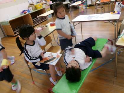 昼食後はお部屋で自発をしました。今日はお医者さんができてきました。お注射をしてくれたり、薬をだしてくれたりしていましたよ。