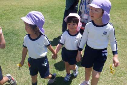 すみれ組のお姉ちゃんお兄ちゃんに手をつないでもらいまいた。