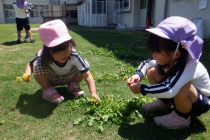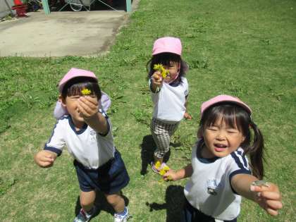 今日は、1年生の校舎の横にある芝生広場まで遊びに行きました。