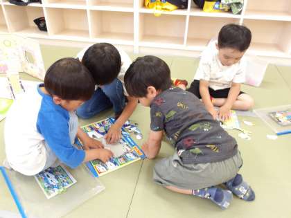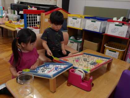 近頃、パズルをしていたり、ビー玉をはじいて遊ぶおもちゃで遊んだりする姿がよく見られます。
