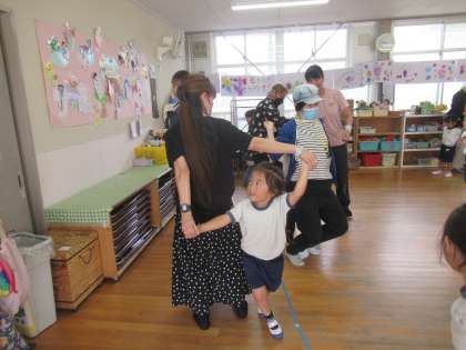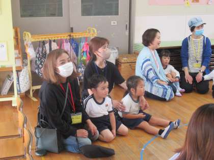 最後にみなさんと一緒に振り返りをしました。おうちの方も「子ども達がかわいくって、楽しくって・・」とステキな笑顔で話してくださいました。