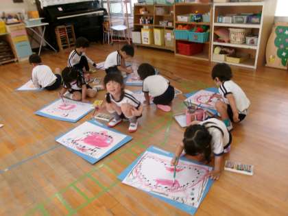 その後は歯の絵の続きをしました。絵の具で塗るとかわいい顔ができあがりましたよ!