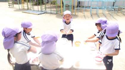 5月24日★今日の様子2(5歳児 すみれ組) 公開日 2024/05/24 更新日 2024/05/24 5歳児 泡遊びをしました。水や泡の心地よさを感じ、子どもたちは大喜び! たくさん泡をつくったり、見立てたりしながら、遊んでいましたよ。 じょうごを使って、ポタポタ落ちてくることを楽しむ姿も! 今度は、色をつけたいみたいです。どんな風に遊びが広がっていくかなあ??楽しみですね。