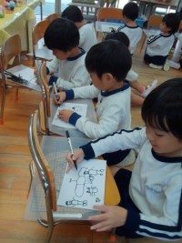 虫の絵も描きましたよ。バッタにクモ、トンボやテントウムシまで。子ども達は自分の好きな虫を描いていました。