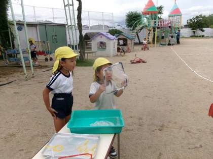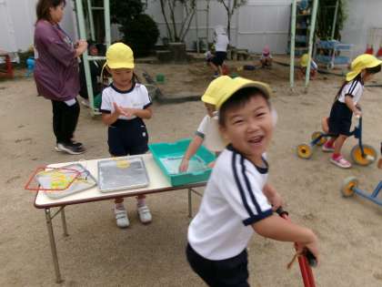 先日からシャボン玉に挑戦している子は、今日は大きなシャボン玉を作ることができましたよ!