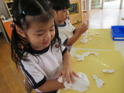 粘土遊びは、手指の訓練にもつながります。