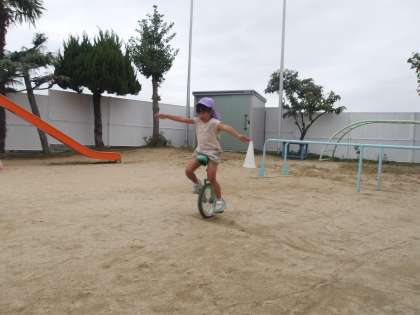 8日 なかよしルーム(預かり保育) 公開日 2024/10/08 更新日 2024/10/08 預かり保育 なかよしルームに来てすぐに一輪車をしたいと言う年長さんがいました。早速おやつを食べたあと、園庭で一輪車を練習する年長さん。あきらめないで挑戦し続けるって格好いいよ!励ましてくれるお家の人や友達がいるから頑張れるんだね!そんな年長さんに影響を受けて、天狗下駄に挑戦する年少さんはとっても嬉しそうでした☆