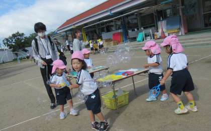 シャボン玉をしたり、バスに乗って遊んだりしている子もいましたよ。