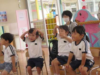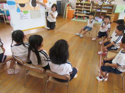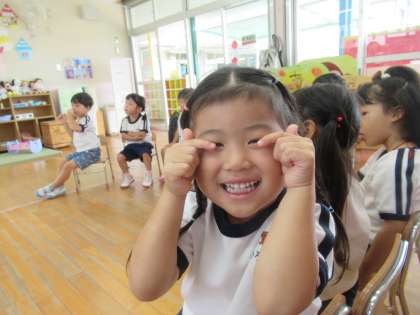 昨日に引き続き今日はもも組さんに「目を大切にしましょう」と保健指導を行いました。