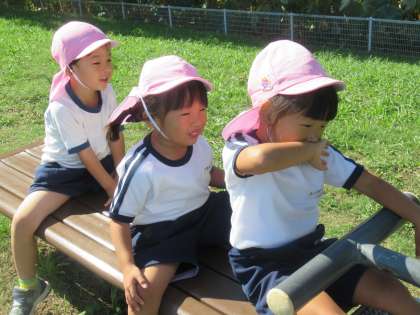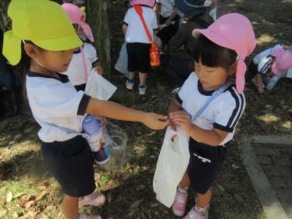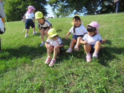 10日 今日の様子2 もも組 公開日 2024/10/10 更新日 2024/10/10 3歳児 お姉ちゃんが大きなドングリを見つけて1つくれました。 「ありがとう」と嬉しそうなもも組さん。 芝生の上で走ったり寝転がったりして遊びました。