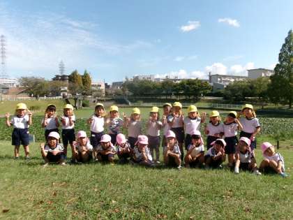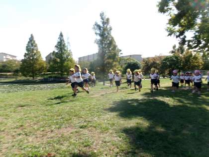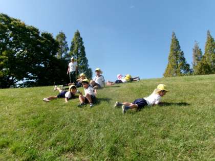芝生に寝っ転がって、坂を下りました。「よーいどん!」でかけっこもしました。