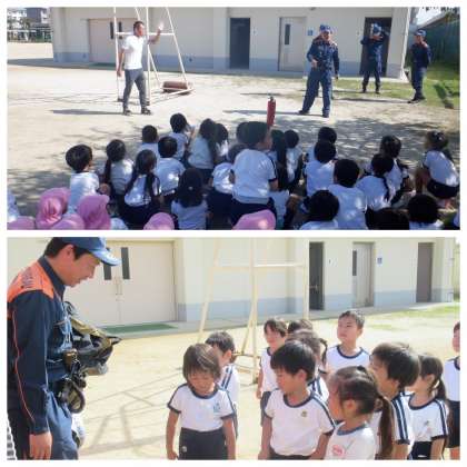 火災の避難訓練は毎月経験を積み重ねているので子どもたちも素早く静かに避難することができました。