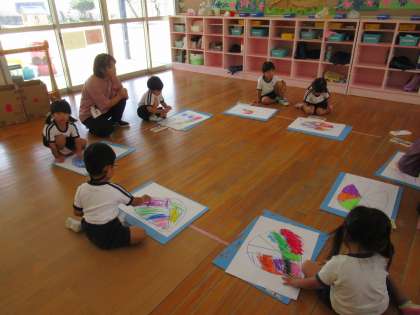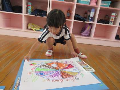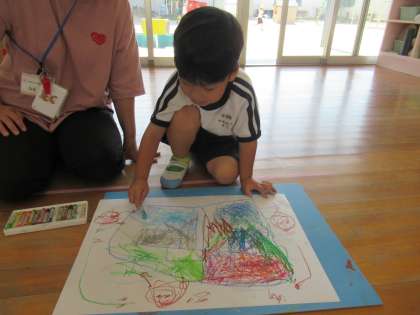 みんなで楽しそうにパラバルーンをしている絵を描いていましたよ。