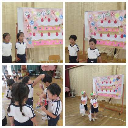 年長さんが上手に司会を進めてくれる中、誕生児さんも自分の名前や好きなキャラクターなどハキハキと答えていました♪