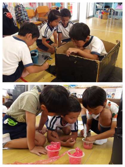 子どもたちが楽しみにしているつくってあそぼう。みんなで数えてみると、あと15日で、おうちの人たちが来てくれると知り、張り切っています。