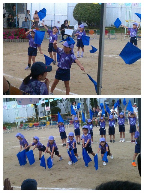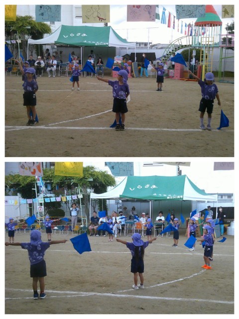 お家の人たちが見に来てくれているので、いつもよりはりきって入場行進です!みんなとってもかっこよかったよ♪体操では、体操係のすみれ組さんのおかげで今日も元気いっぱい体操をすることができました。