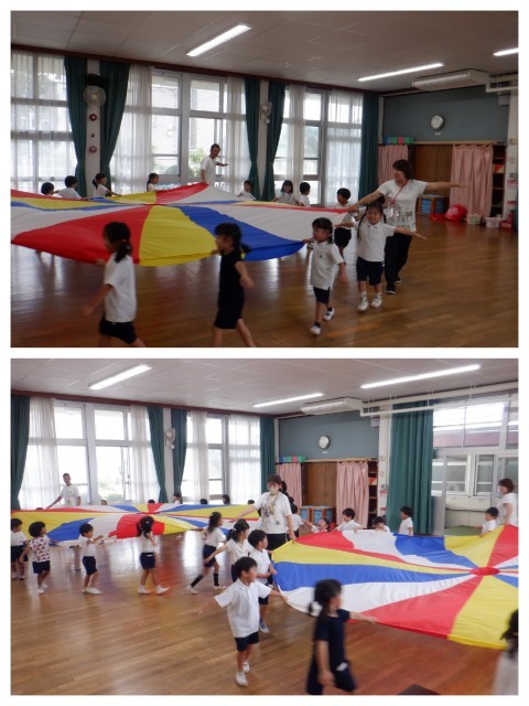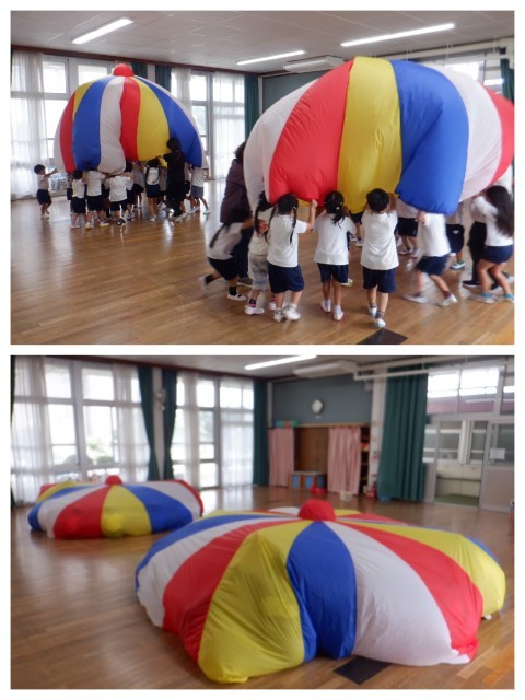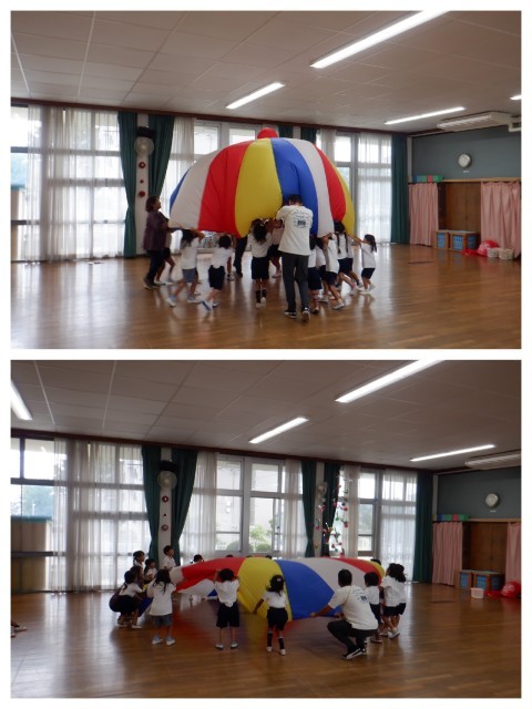 26日(日)の白鷺校区連合体育大会でするバルーンをみんなでしました。「前は万博の曲でやったよな~♪」「2025♪ってしたなぁ」と4・5歳児は昨年度したことをとってもよく覚えていました。みんなですることが、楽しくて嬉しくて今日は大喜び!みんなと一緒だからできることに、楽しみながら取り組んでいきたいと思います。