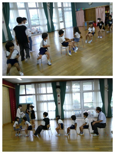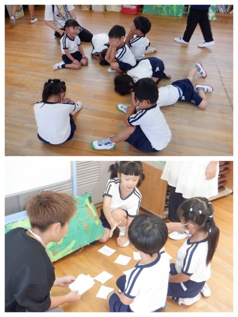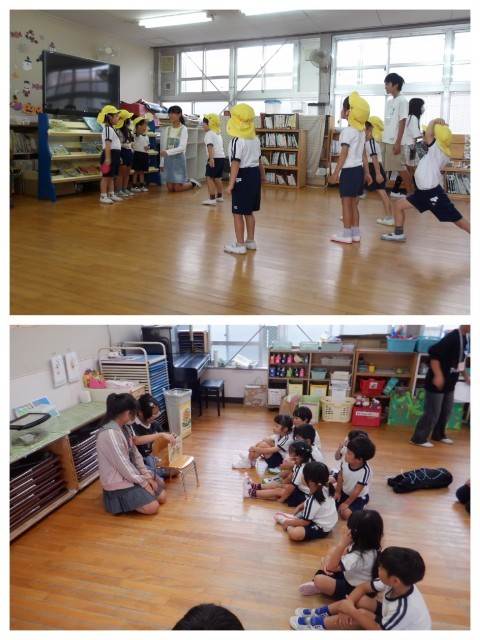 今日は6年生の『総合の学習』の一環で白鷺小学校6年生が職業体験で幼稚園に来てくれました。事前に保育案を6年生が考え、実際に子ども達の前で今日は保育をしてくれました。6年生が来てくれるということだけでもとっても嬉しい子ども達♪何をしてくれるのかな?と楽しみにしていました。
