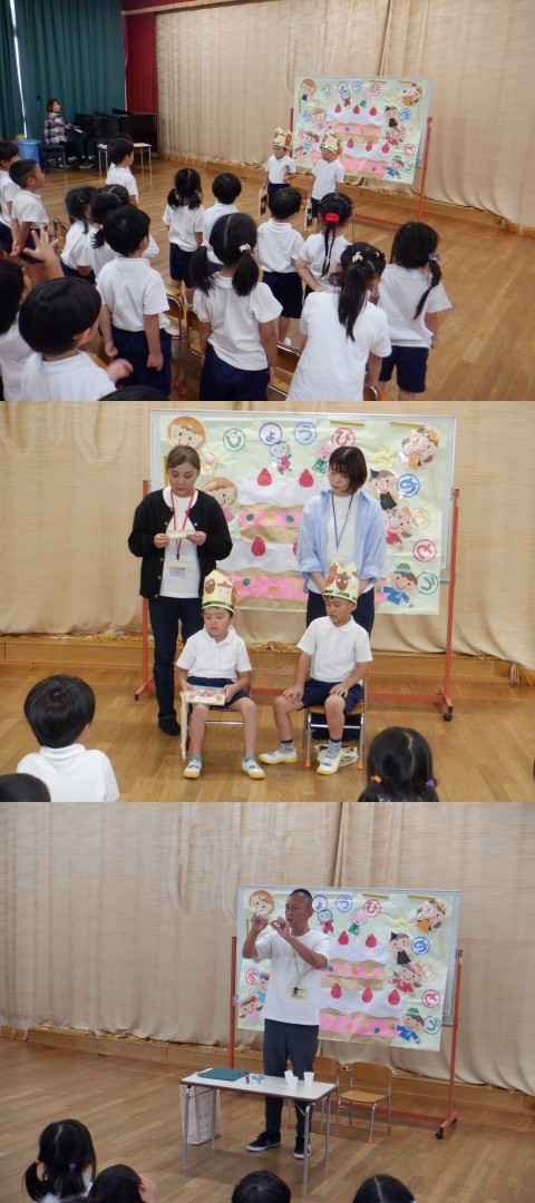 今日は6年生の『総合の学習』の一環で白鷺小学校6年生が職業体験で幼稚園に来てくれました。事前に保育案を6年生が考え、実際に子ども達の前で今日は保育をしてくれました。6年生が来てくれるということだけでもとっても嬉しい子ども達♪何をしてくれるのかな?と楽しみにしていました。