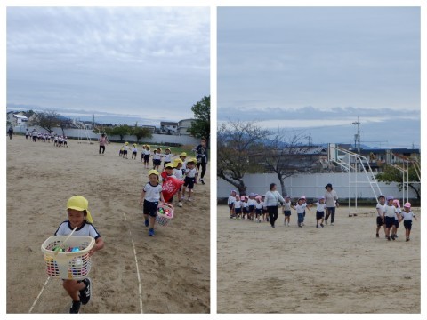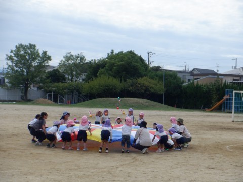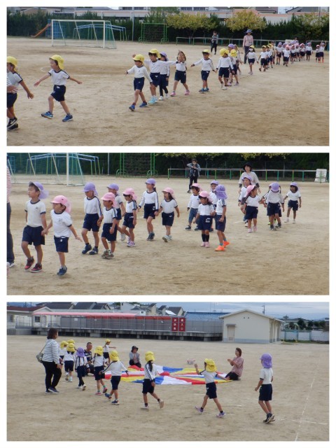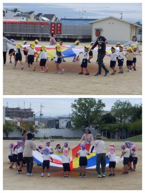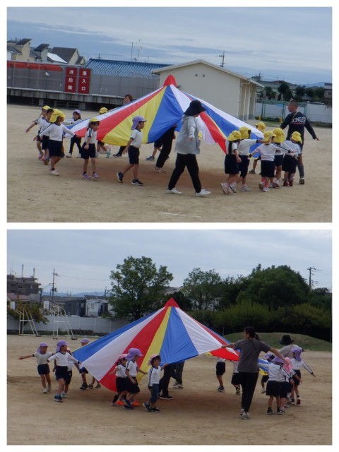 26日(日)の白鷺校区連合体育大会でするバルーンをみんなでしました。「前は万博の曲でやったよな~♪」「2025♪ってしたなぁ」と4・5歳児は昨年度したことをとってもよく覚えていました。みんなですることが、楽しくて嬉しくて今日は大喜び!みんなと一緒だからできることに、楽しみながら取り組んでいきたいと思います。