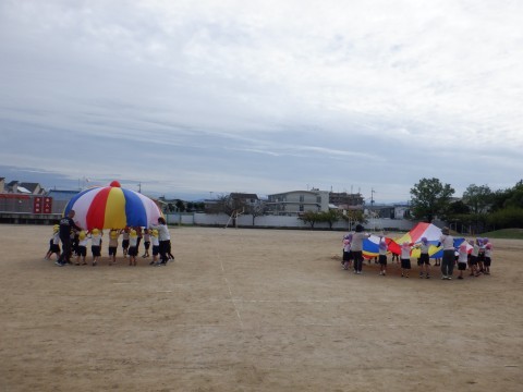 今日も午後からはみんなでお楽しみのバルーン♪昨日少しうまくいかなかったところも、今日はうまくいくポイントがわかりみんなで楽しくすることができました。大きくふくらませたり、みんなでまわったり、中に入ったりすることで様々に形がかわるバルーン!小学校の広い校庭でするのが楽しみだね。