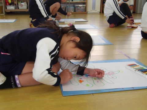 すみれ組さんで大きなクリスマスツリーに飾りつけをしました。キラキラの飾りつけに大喜びでした。飾りつけをした後は,みんなでジングルベルのダンスを踊りました。クリスマスが待ち遠しいすみれ組さんです。
