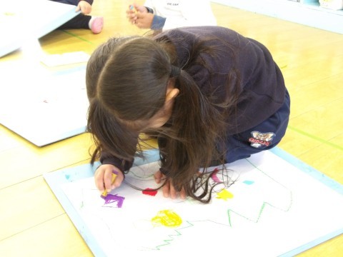 お餅つきの後は,今日の楽しかったお餅つきの様子を思い出し絵に残しました。