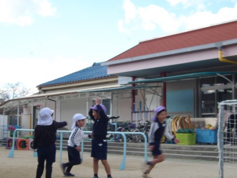 今日はとても寒かったですが,子ども達は寒さに負けず元気いっぱいに園庭を走り回っていました。