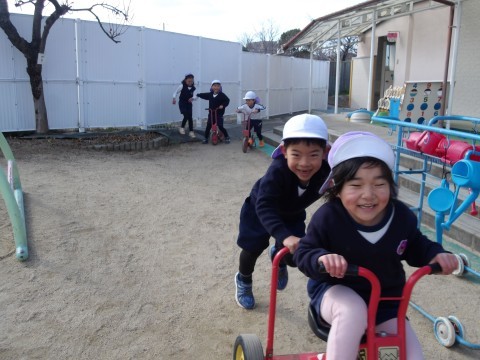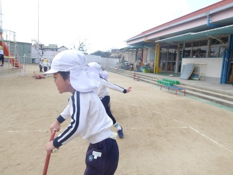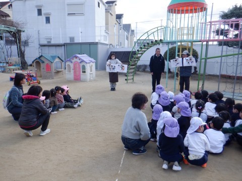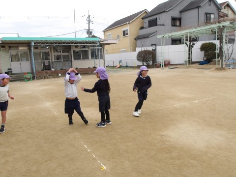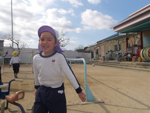 今日は節分でしたね。園庭で豆まきをしました。「おにはそと!」と元気いっぱいに豆をなげていました。