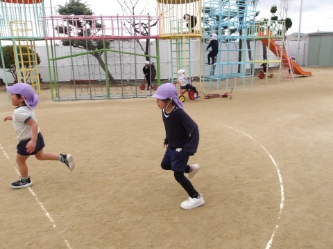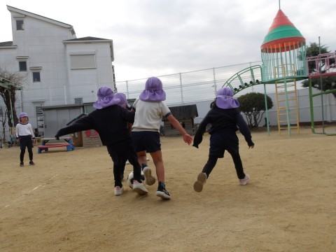 寒さの中元気いっぱい外で遊ぶすみれ組さんです。保育室ではそれぞれのやりたいおばけになってごっこ遊びを楽しみました。共通のイメージが持ててきました。これからのお話が楽しみです。