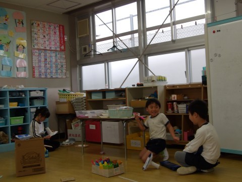 好きな遊びでは,お部屋で段ボールを切ったり,貼ったり,何をしているのかな?と思えば海賊ごっことやらで,何やら楽しそうにしていました。