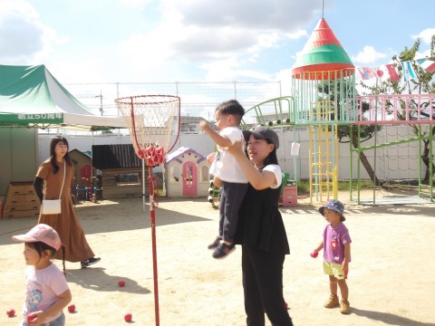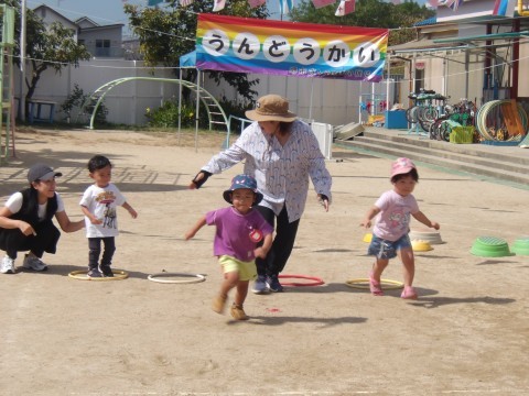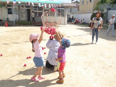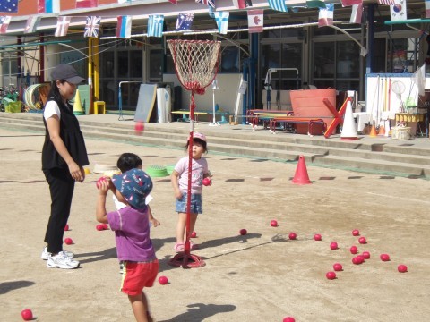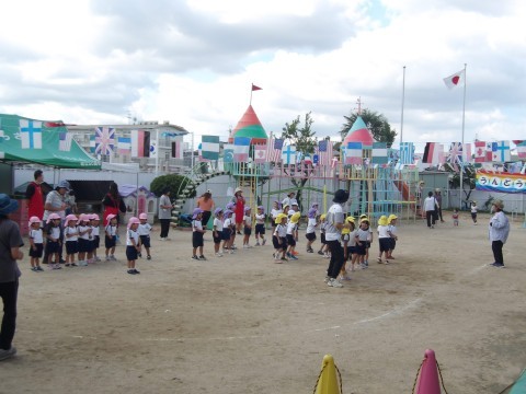 さわやかなお天気だったので園庭でサーキットや玉入れ,かっけこをして遊びました。