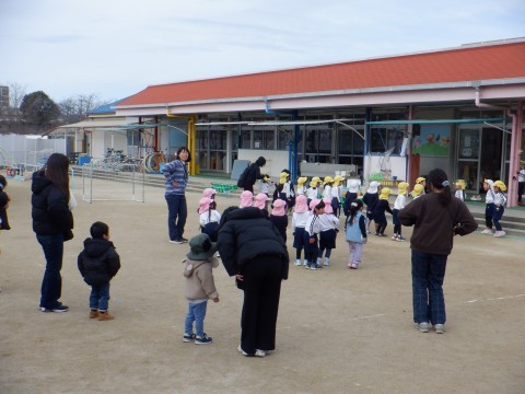 今日はとても寒い日でしたが,おうちの人と一緒に幼稚園に遊びにきてくれました。