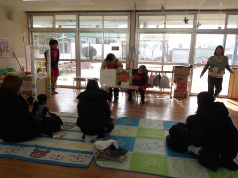 次回の未就園児招待は2月17日(火)です。こりす組では、3歳児もも組さんの劇を見てもらいます。ぜひ見に来てくださいね。