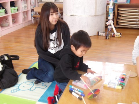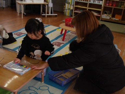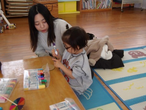 来年度,幼稚園にくるお友達が制作遊びをする時間です。