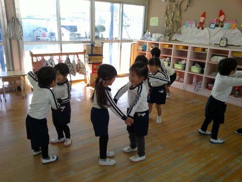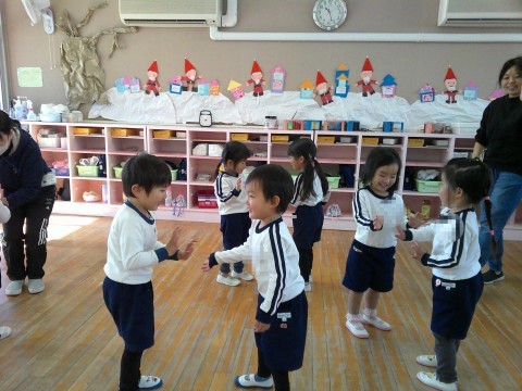 その後は、ジングルベルの音楽に合わせて踊るふれあいダンスをすみれ組さんに教えてもらいましたよ。すみれ組さんが、やさしく教えてくれるのでもも組さんも楽しく踊れたようですよ(*^▽^*)「また踊りたいな~」と話す姿もありました。またみんなでふれあいダンスを楽しみたいと思います。