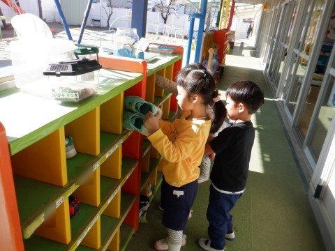 今日もとても寒い1日となりました。子どもたちは寒さに負けず,かけ足をしたり園庭で元気に遊んでいます。