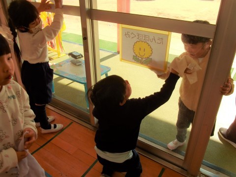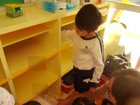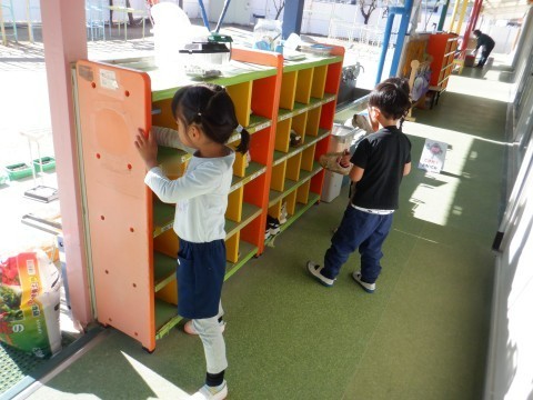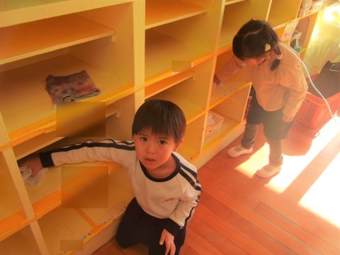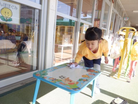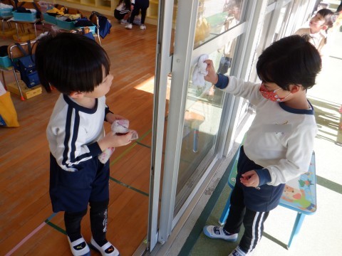ほかにも保育室で自分の棚を整理したりぞうきんで拭いたりしてきれいにしたら、床や窓、靴ばこなど普段から使っているものもきれいにしていました。