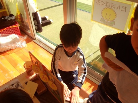 明日はお誕生日会があるので、12月のお友達に「おめでとう」と祝ってみんなでたくさん楽しもうね♪
